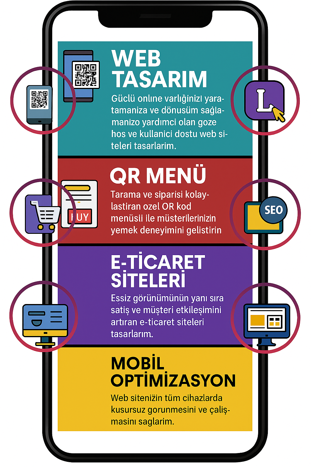 Modern, işlevsel, mobil uyumlu, özgün, kullanıcı dostu, ekonomik, yenilikçi, profesyonel, stratejik web tasarımları yapıyoruz.